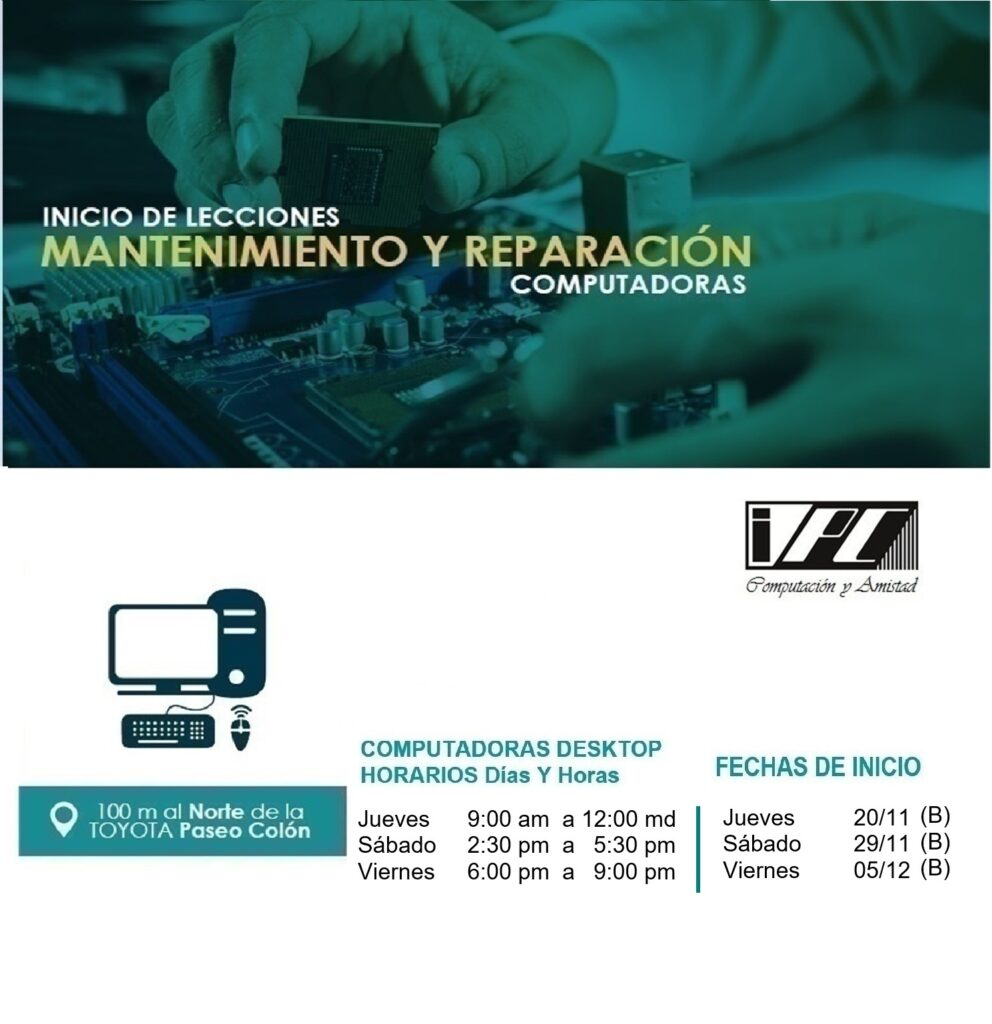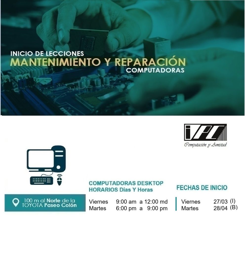 MANTENIMIENTO PC DIRIGIDO– Personas que Desean Conocer la Composición de un equipo.– Personas que desean aprender la instalación del software .– Personas que Desean compartir recursos y dar mantenimiento. Abajo EncontraráUna Súper OfertaPara HOY REQUISITOS 1- Mayor de 18 Años 2- Conocimiento Sistema Operativo Windows 3- Experiencia en uso de Internet OBJETIVOS CONTENIDO DURACIÓN 3 meses – 12 Lecciones – 48 Horas HORARIO E INICIO Y COSTOS METODOLOGIA El Curso se Realizará en Nuestras InstalacionesCada Alumno con una Computadora, para sus Clases.Es un Curso muy Agradable, Completamente Asistido. Garantizado 100% TARIFAS Y OFERTAS Nuestras Tarifas y Ofertas de la SemanaClic aquíhttps://wa.me/50661352828Números de ContactoCentral Telefónica 22571010WhatsApp 61352828 PrefieresChat por Audios en WhatsApphttps://wa.me/50661352828 INCLUYE Manual de Curso Prácticas DirigidasDocumentos para Evaluación Certificado de Aprobación o Participación ENVÍA LA PALABRA«MANTENIMIENTO»https://wa.me/50661352828Y RecibeSUPER OFERTAWhatsApp Además, Podría interesarte: ESPECIALISTA MS EXCEL 2019 VER MÁS Nuestro Programa de Módulos MS OFFICEo Cursos Libres VER MÁS Me prepararé y algún día llegará mi oportunidad. Abraham Lincoln